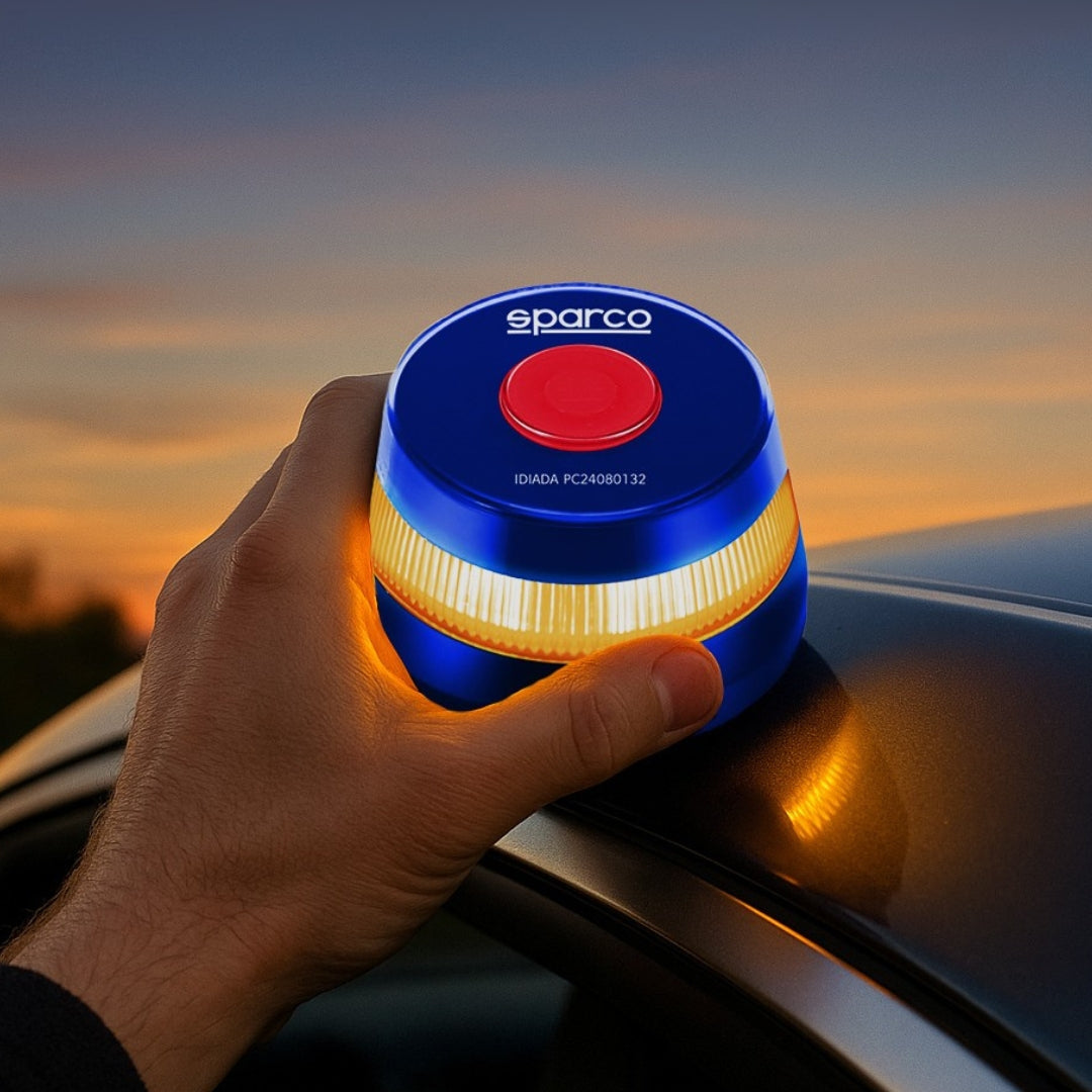 La Baliza V16 Sparco homologada por la DGT es el nuevo dispositivo de seguridad vial que sustituirá a los triángulos de emergencia y será obligatoria en España a partir del 1 de enero de 2026. Diseñada por Sparco, marca referente en automoción y seguridad desde 1977, esta baliza combina máxima visibilidad (hasta 1 km y 360º) con la fiabilidad de un producto premium.